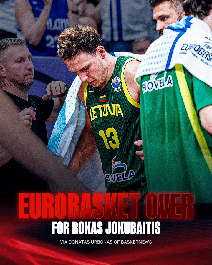 09月02日讯 立陶宛男篮提前晋级下一轮 16强,但是24岁核心控卫的卢卡斯-乔库巴蒂斯因严重膝伤提前退赛本届男篮欧锦赛。