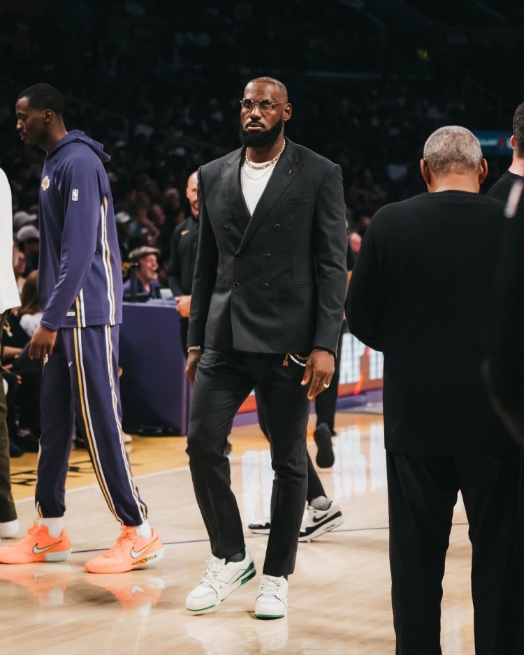詹姆斯晒出一组他身穿西装在现场观赛人群 湖人赛季揭幕战的图片,英超直播并配文了两个表情:🌊👑。
