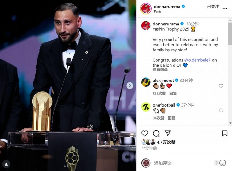 多纳鲁马社媒晒出领奖的照片,英超直播并写道:2025年雅辛奖🏆非常自豪能获得这份认可,能与家人一起庆祝感觉更棒了!”