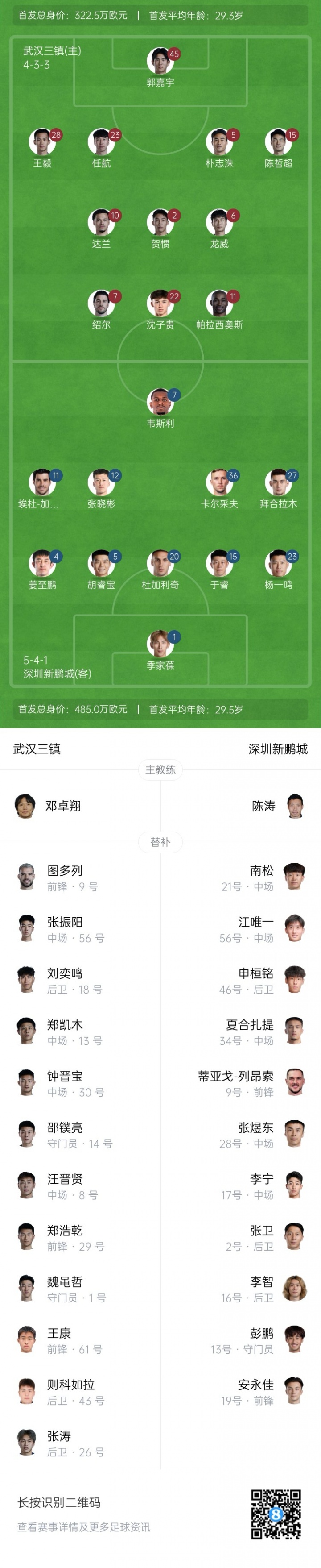 10月24日讯 中超第28轮,武汉三镇vs深圳新鹏城将于19:35开球ac米兰引援最新新闻,英超免费高清直播赛前杆位阵形 已经公布。