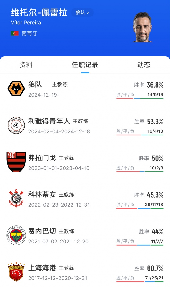 狼队官方宣布与主指导教练员维托尔-佩雷拉解约,球队在2025/26赛季开局阶段未尝胜绩。