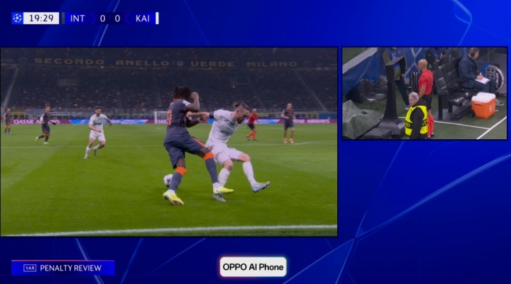11月06日讯 国米vs凯拉特第18分钟,凯拉特前场抄截 后冲破 造点!但裁判 看VAR后,英超直播判定没有十二码球。